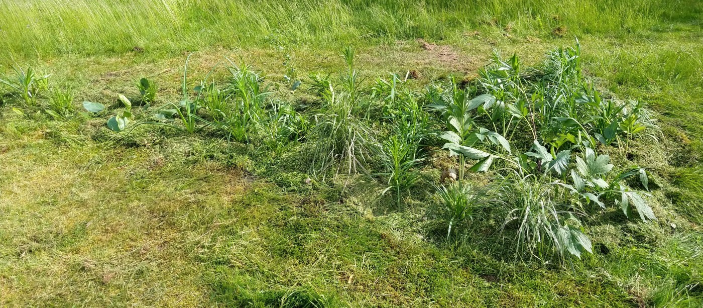 We created a boarder right in the loan. Mr. J. removed the upper part of the grass loan and planted the seedlings we germinated. Why start a new boarder in the middle of the loan in stead of refreshing the old boarders? Well, it is so much easier to design a new boarder compared to re-designing the old ones.